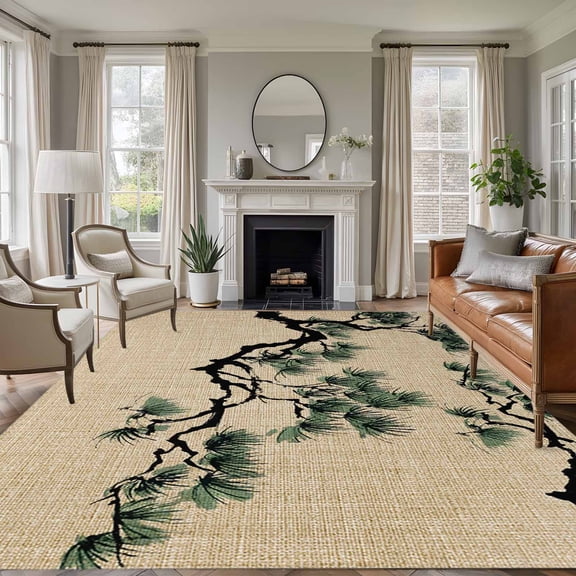 Flatwoven High Traffic Area Rug, Wildlife Cabin Rustic Pine Tree Floor Mat, Non Slip, Stain Resistant, Washable Area Rugs for Living Room, Bedroom(Green, 2X3) From $52.99
