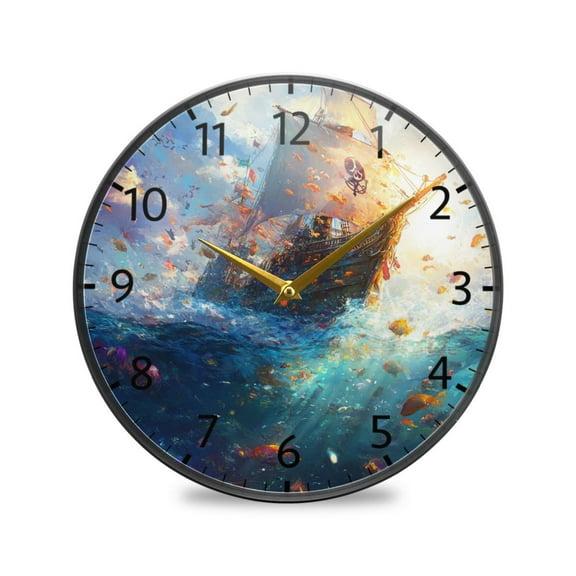 current price $24.99Wall Clock Decorative - Dark Pirate Ship Print 2D Vintage Wall Clocks Battery Operated Silent Non-Ticking for Bedroom, Living Room, Kitchen, Office, Classroom, 10 Inch