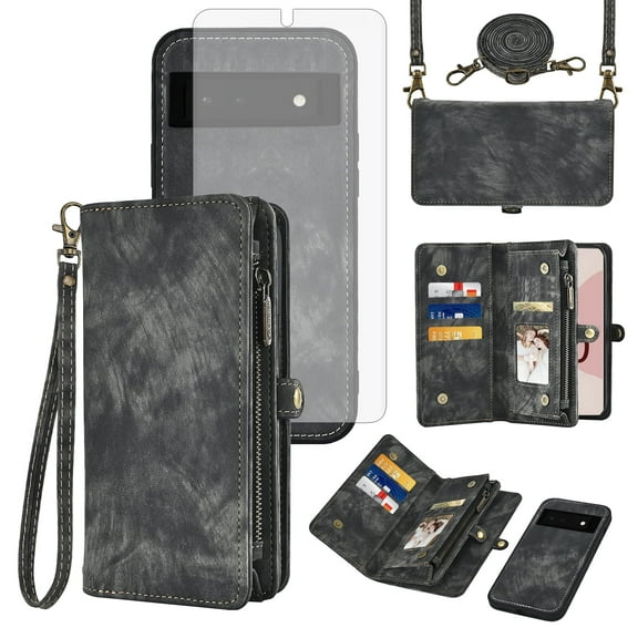 Asuwish Compatible with Google Pixel 6 Phone Case Zipper Wallet Detachable Tempered Glass Screen Protector Crossbody Lanyard Strap Flip Card Holder Cell Cover for Pixel6 Pixle Six Women Girls Black From $25.99