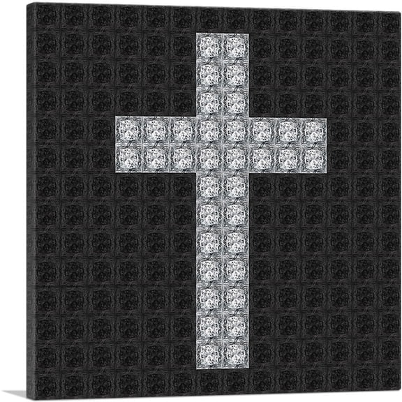 ARTCANVAS Black Gray Jewel Christian Cross Church Pixel Canvas Art Print - Size: 12" x 12" (1.50" Deep) From $46.99
