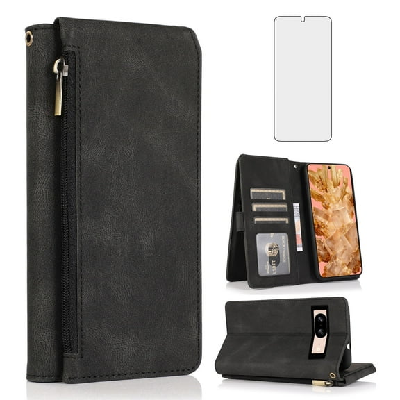 Asuwish Phone Case for Google Pixel 9A Wallet Mobile Accessories Credit Cash Purse Cell Cover with Tempered Glass Screen Protector Flip Zipper Stand Card Holder Slot Pixel9A A9 5G Women Men Black From $14.99