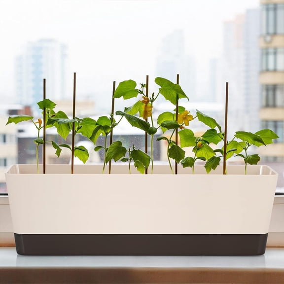 Window Box Planter, Plastic Vegetable Flower Planters Boxes Rectangular Flower Pots for Indoor Outdoor Garden, Patio, Home Decor
