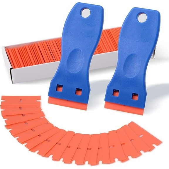 current price $10.59Emlimny 2PCS Plastic Razor Blade Scraper Include Scraper Tool and 100PCS Blades for Gasket Remover, Labels Decal and Adhesive Remover for Windows and Glass
