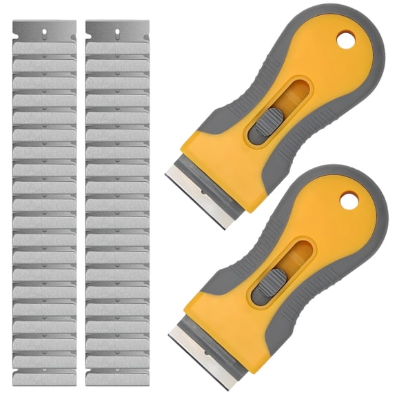 current price $11.29Razor Blade Scraper Tool, Razor Scraper with 40Pcs Metal & Plastic Blades, Sticker Remover Cleaning Scraper for Paint, Decal, Adhesive, Label, Caulk, Glass Scraper for Window, Cooktop, Oven, Stove Top