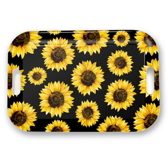 Serving Trays with Handles, 14.5 x 9.8 inch Rectangular Plastic Tray for Restaurant, Kitchen, Sunflower Black Background