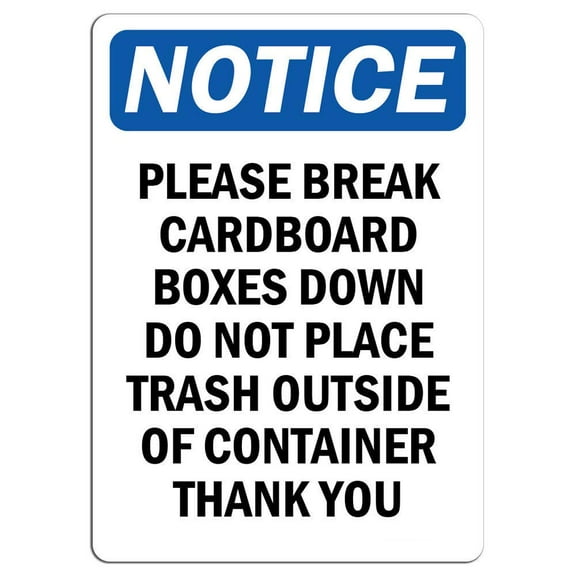 OSHA Notice Signs - Please Break Cardboard Boxes Down | Decal | Protect Your Business, Construction Site, Warehouse | Made in the USA