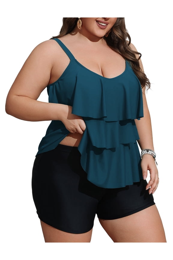 Women Plus Size Tankini Swimsuits Tummy Control Two Piece Bathing Suit Ruffled Flounce Swimwear with Shorts 0X-5X9794.4 out of 5 Stars. 979 reviews
