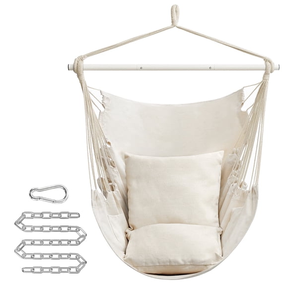 SONGMICS Hammock Chair, Load Capacity 500 lb, Hanging Chair with 2 Cushions, Large Hammock Swing with Chain and Pocket, Cream White Was $49.99