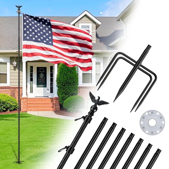 Best seller FIASON 1 Pack 6 FT Black Stainless Steel Tangle Free Wall-Mounted Flag Pole with Upgraded Bracket, Flag Pole Kit for Outside House, Residential or Commercial for American Flag (Without Flag) From $20.99