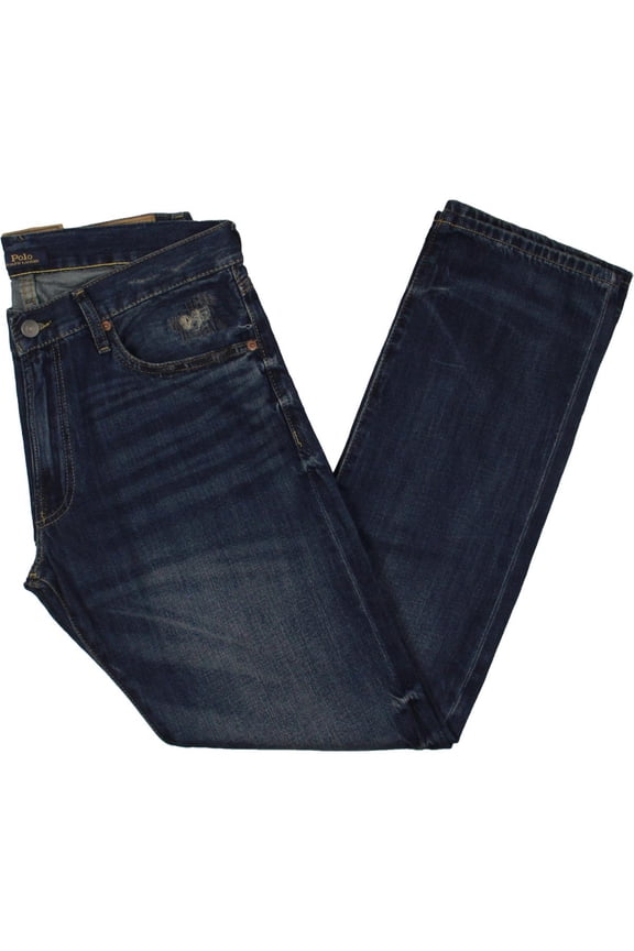 Mens Varick Straight Leg Distressed Slim Jeans$115 Polo Ralph Lauren Men's Varick Slim Straight Stretch Jeans Navy, 34WX34L $63.74