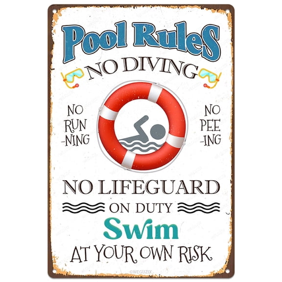 current price $12.99Noete Pool Rules Sign 12x16 Inch Vintage Metal Sign for Swimming Pool & Water Park Safety Funny Warning Tin Sign with Customizable Text Durable Wall Decor for Home or Business