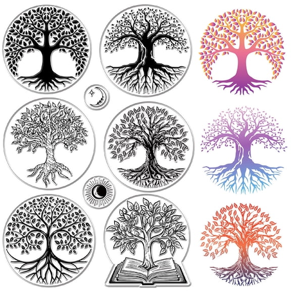 Tree of Life Clear Stamps Book Sun Moon Reusable Transparent Silicone Stamp Seals Postmark $7.37 Was $8.28