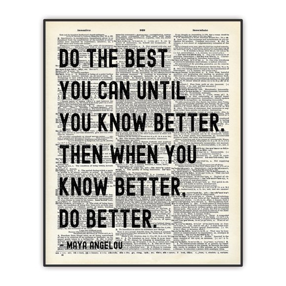 Motivational Print, Do The Best You Can, Maya Angelou Quote, Dictionary Art Print, Kids Encouragement Quote, Office Wall Decor, Inspirational Poster for School Classroom UNFRAMED 8"x10"