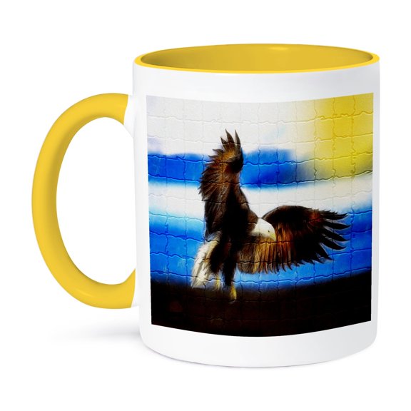 3dRose, The Hunter Eagle Swoops In For His Pray , 11oz Two-Tone Yellow Mug