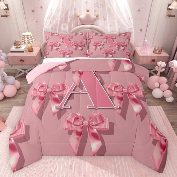 Manfei Personalized Initial K Full Size Comforter Sets 3-Piece for Preppy Child,Pink Ribbon Bow Knot Bedding Comforter Set,Bling Glitter Lightweight Bedding Sets,Luxury Bedroom Decor,Reversible From $43.69