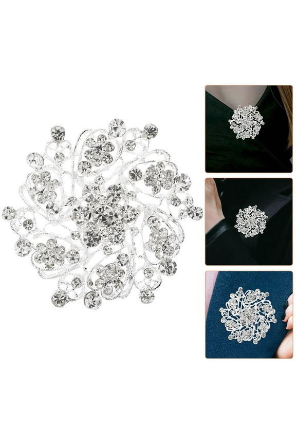 1Pcs Elegant Flower Brooch Pin Rhinestone Alloy Silver Decorative Accessory For Women Clothes Hat $7.29