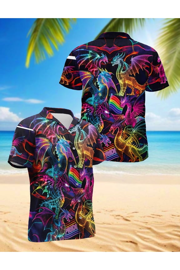Pride Dragon Hawaiian Shirt, Rainbow Dragon Aloha Shirt, LGBTQ Pride Unisex Button Down Shirt, Colorful Fantasy Dragon Summer Shirt S–5XL From $19.99