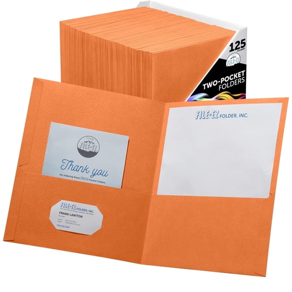 Best seller FILE-EZ Two-Pocket Folders, Orange, 125-Pack, Textured Paper, Letter Size (EZ-52465) From $18.59