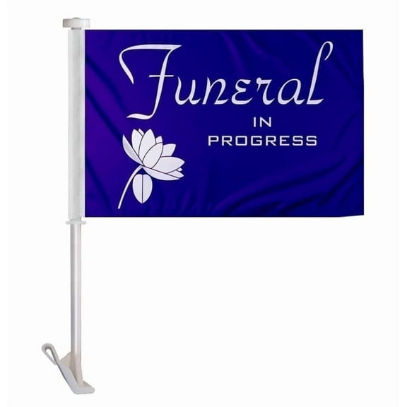 Promopatriot Funeral in Progress White Flower on Purple Car Flags - 10.5x15 inch, Double-Stitched Polyester, 19" Unbreakable Pole From $18.96