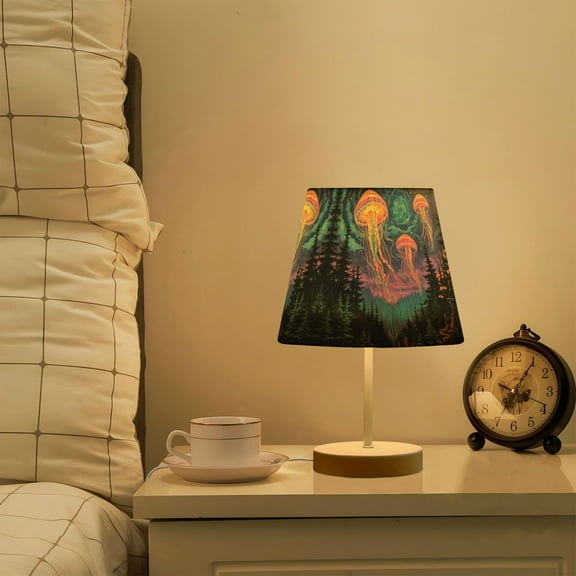Yayeee Mini Table Lamp 11.8" Dimmable with Fabric Shade 3 Color Temperatures, Psychedelic Jellyfish