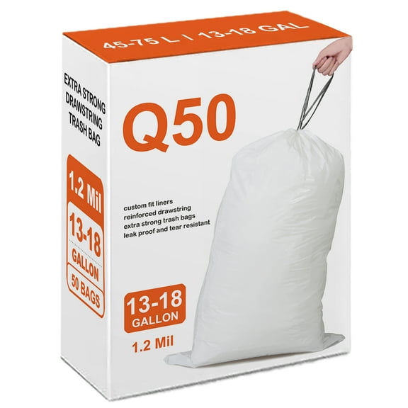 current price $31.52Custom Fit Trash Bags Compatible with Code Q (50 Count) 13-17 Gallon Drawstring Garba Liners Heavy Duty Tear-Resistant