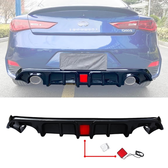 current price $210.99NINTE Diffuser for 2017-2022 Infiniti Q60 Rear Bumper Lip Gloss Black with Real LED Brake Light
