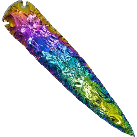 current price $21.00Titanium Aura Obsidian Arrowhead, Natural Crystal and Healing Stone Flint Rock Arrowhead 4 inch.