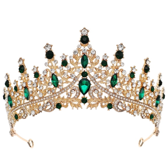 Miallo Forest Green Gemstone Queen Crown for Costumes, Regal Rhinestone Bridal Tiara for Wedding, Elegant Birthday Hair Accessory From $14.99