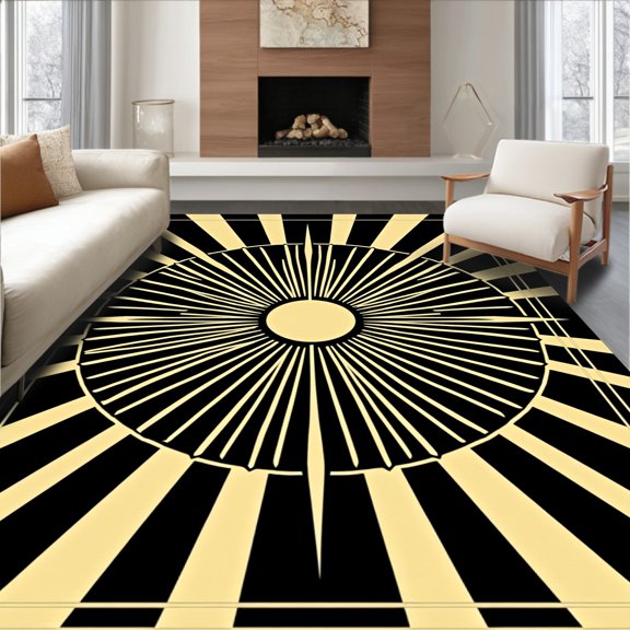 ODIKA 4x6 Machine Washable Non-Slip Area Rug, Art Sunburst with Radiating Lines Modern Style Floor Cover High Traffic Rug, Black, 444468 From $69.99