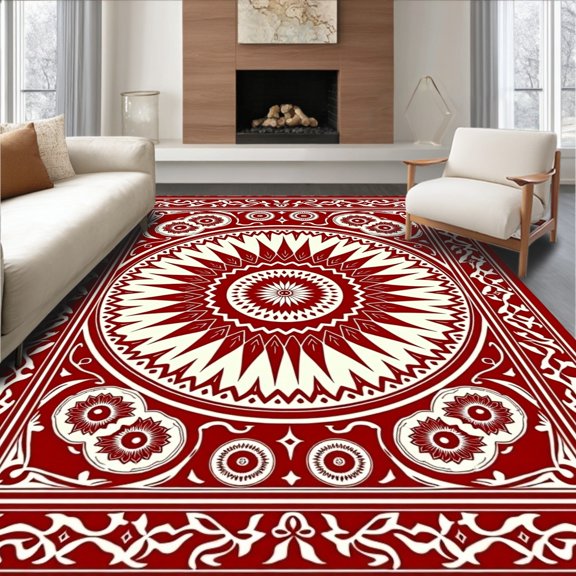 ODIKA 2x3 Machine Washable Non-Slip Area Rug, Bohemian Sunburst Tapestry Design Floor Covering with Radiating Petals High Traffic Rug, Red, 493241 From $69.99