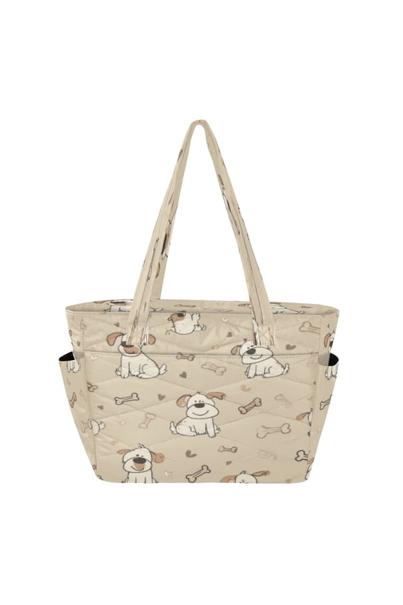 Puppy Bones School Book Bag Kids Tote Bags Handbagblack white Skull bone for Tote Bag for Women, Quilted Shoulder Bag with Zipper, Large Capacity Handbags for Casual, Travel, Work $21.99