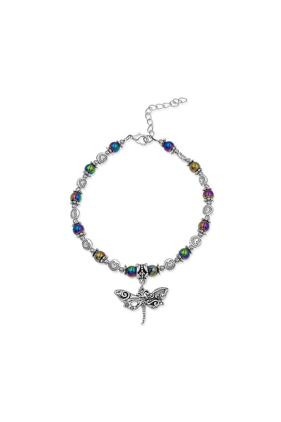 Mandala Flower Round Rainbow Hematite Stone & Hearts Adjustable AnkletHandmade Dragonfly Rainbow Hematite Stone Adjustable Anklet $17.57