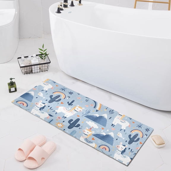 Llamas Cactus Mountains Rainbow Bath Mat 39x20 Non-Slip Bathroom Rugs Absorbent Soft Plush Quick Dry for Tub Shower Kitchen Home Decor $19.88 Was $23.99