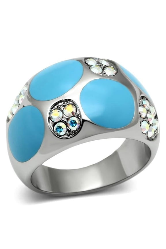 Alamode TK687-5 High Polished No Plating Stainless Steel Ring with Top Grade Crystal, Rainbow Effect Aurora Borealis - Size 5 $15.21