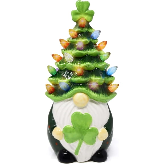 current price $18.95Gift Boutique St. Patrick Day Light-Up Ceramic Gnome Tree – 8.6 inch Irish Shamrock Tabletop Decoration with Lights for Home, Office, or Holiday Display