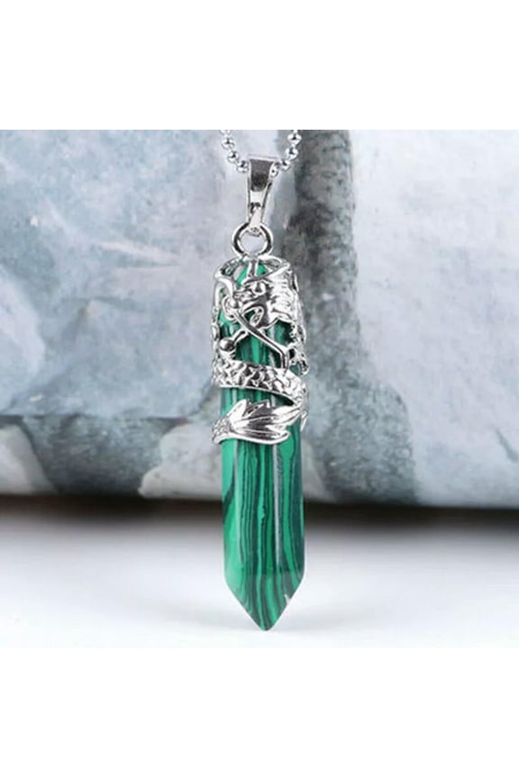 Raw Natural Malachite Quartz Crystal Pendant Hexagon Point Stone Amulet OrnamentRaw Natural Rock Malachite Pendant Quartz Obelisk Crystal Stone Necklace Healing $16.99