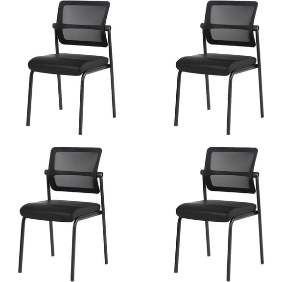 CLATINA Armless Waiting Room Chair with Adjustable Mesh Backrest, Office Guest Reception Chairs with Leather Cushion for Conference Lobby School, Black 4Pack From $69.99