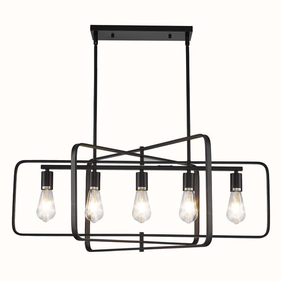 Magic Home 5-Light Kitchen Island Lighting Hanging,Farmhouse Linear Chandeliers,Rectangle Rustic Ceiling Pendant Light Fixtures,Matte Black From $188.99