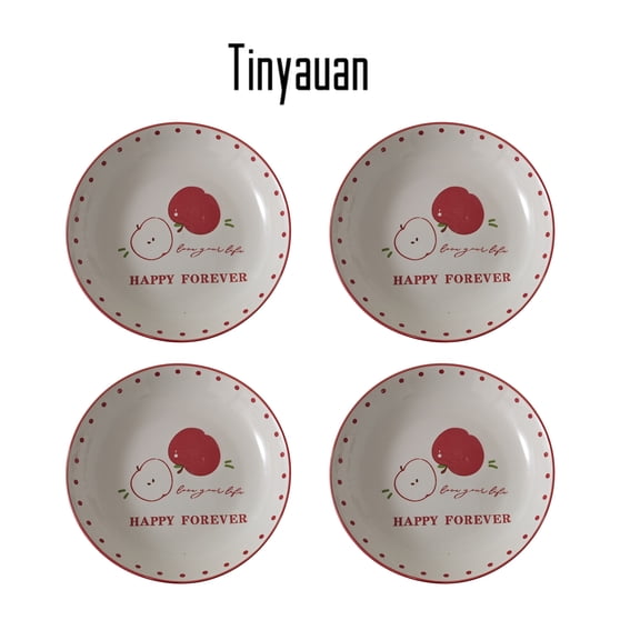 current price $15.99TINYAUAN Dishware Ceramic Plate for Home and Gifting, Red Polka Dot Rim