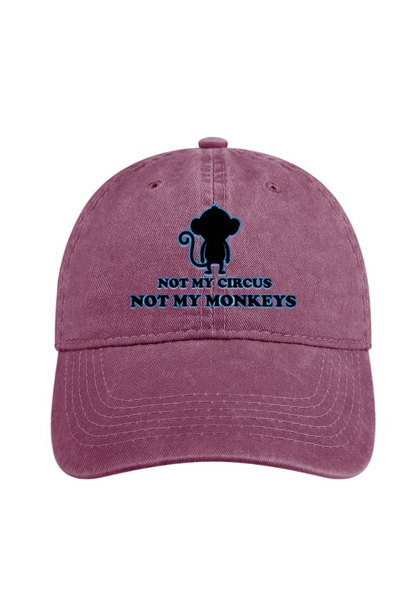 Wine Red Embroidered Baseball Cap It's Not My Circus It's Not My Monkey Funny Dad HatVintage Washed Team Punch Monkey Graphic Dad Hat for Women - Distressed Cotton Baseball Cap with Whimsical Primate Print, Trendy Relaxed-Fit Casual Hat