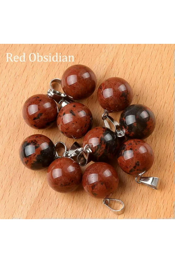 Natural Stone Obsidian Rainbow Eye Beads Ball Pendant Necklaces Lucky Transfer !-Red-14mmNatural Red Onyx & Snowflake Obsidian 8mm Round Shape Smooth Cut Beads Stretchable Bracelet For Men & Women. Unisex Bracelet $22.99