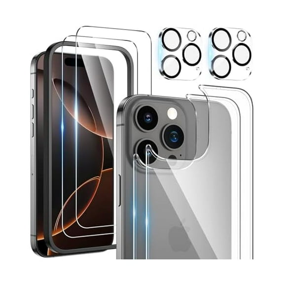 current price $15.99for iPhone 17 Pro Max Screen Protector (6.9 inches), iPhone 17 Pro Max Back Screen Protector and Front Screen Protector with Camera Protector [2+2+2 Pack], 9H Hardness