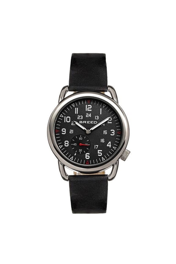 Regulator Leather-Band Watch w/Second Sub-dial - Black