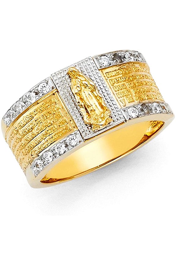 10kt 10k Two-tone Gold Mens Square Head Guadalupe Religious Cuban Border RingCross Rings for Women 925 Sterling Silver Faith Cross Adjustable Ring Christian Spoon Rings Religion Jewelry For Women Daughter Friend From $44.00