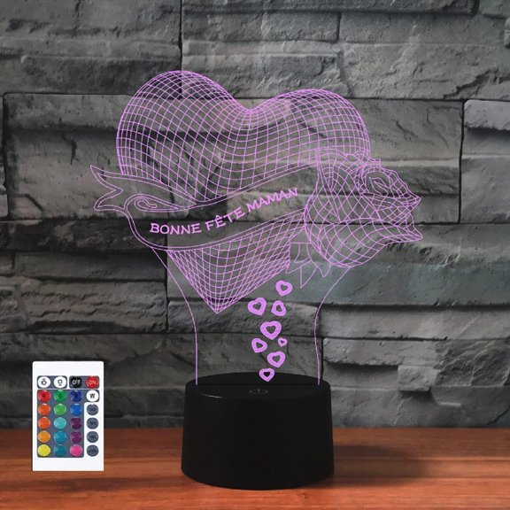 YSITIANNA 3D Love Heart Valentine's Day Remote Control 16 Color Night Lights Illusion Acrylic LED Birthday Gifts STNL#2622 $19.99