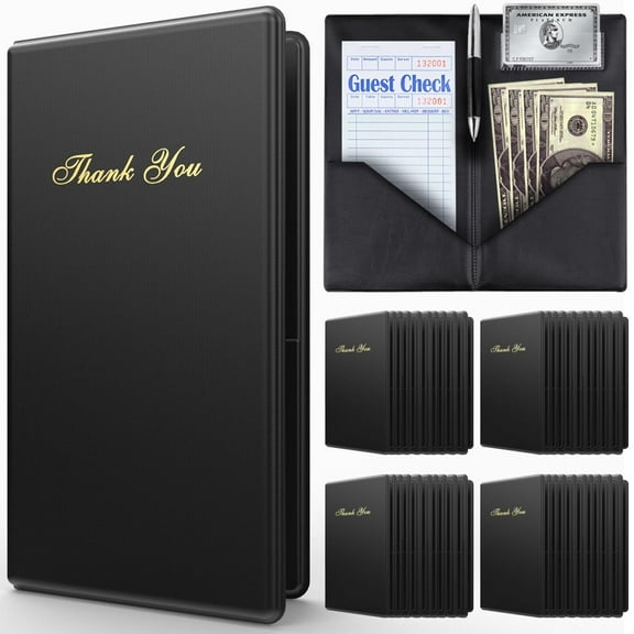 current price $71.99Check Presenters for Restaurants – 40 Pack Guest Check Card Holder- Black with Gold Thank You Imprint- Bill Book Restaurant Supplies 5.5’’ x 10’’ (40 Pack)