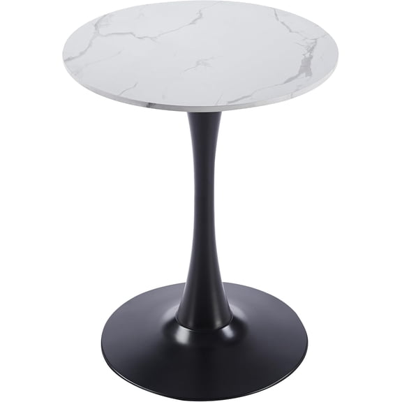 LeisureMod Bristol 24" Wide Round Dining Table Bivel Design MDF Wood Top and Black Stainless Steel Pedestal Base Accent Table Mid-Century Café Table, Kitchen Dining Room Furniture (White Marble From $164.00