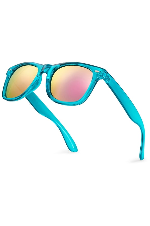 Translucent Turquoise 80s Sunglasses with Revo Rose Gold Mirror Lens - UV Protection From $15.99