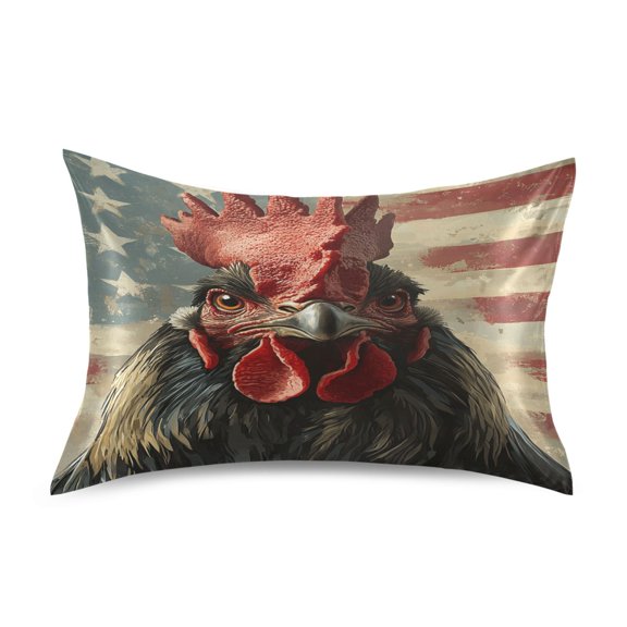 Satin Pillow Case Standard Silk Pillow Cover for Hair and Skin Envelope Closure Retro Chicken with American Flag 20"x26" From $13.99