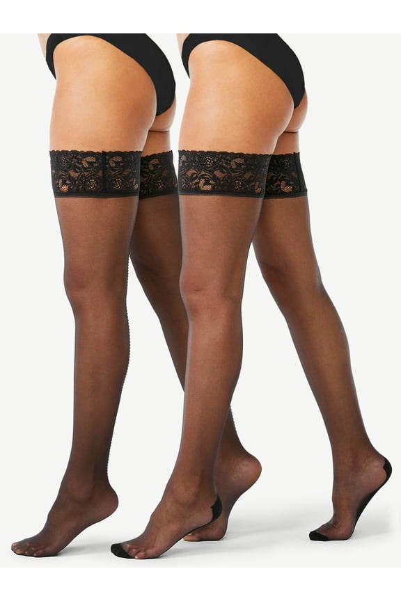 20D Backseam Thigh-High Stockings, Stay Up Lace Sheer Tights, 2 pairs, Black LOpaque Lace Top Thigh High Stockings for Women, Regular & Plus Sizes, 2-Pack From $11.97